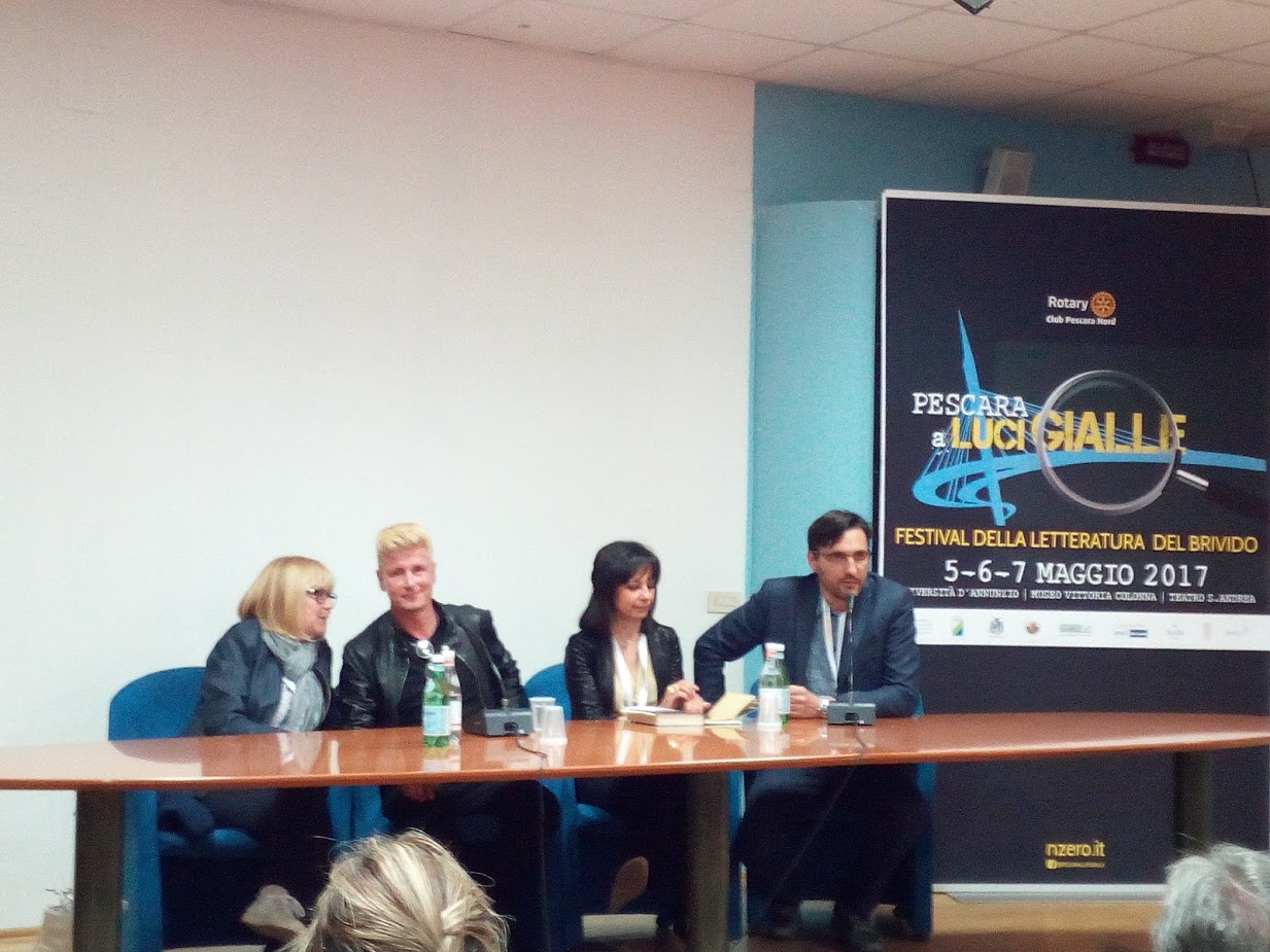 L’organizzazione di Pescara a Luci Gialle ha ben intercettato la passione dilagante per gialli e affini e se ne è fatta interprete proponendo incontri tematici ad altissimo livello: dai metodi investigativi, relatore ospite il vicecapo della polizia Luigi Savina, al giallo storico, con Emma Pomilio, Valeria Montaldi e Giada Trebeschi, e con Franco Forte e Matteo Strukul; dalle recensioni on line, con Cristina Marra, Caterina Falconi, Cristina Aicardi e Cecilia Lavopa, al cybercrime, con il massimo esperto italiano, Giovanni Ziccardi; dal thriller psicologico di Wulf Dorn all’applauditissimo Antonio Manzini, fino alle ladies Gabriella Genisi e Marilù Oliva. A Pescara il giallo è salito in cattedra per raccontare se stesso e la società in cui viviamo attraverso le voci dei protagonisti. Ad accogliere i relatori arrivati da fuori regione il comitato tecnico del festival, composto dai talenti abruzzesi Angela Capobianchi, Enzo Verrengia, Giovanni D’Alessandro, Romano De Marco, Maristella Lippolis, Ugo Perolino, Giacomo D’Angelo e naturalmente dai soci del Rotary Club Pescara Nord e dal presidente Ciofani.