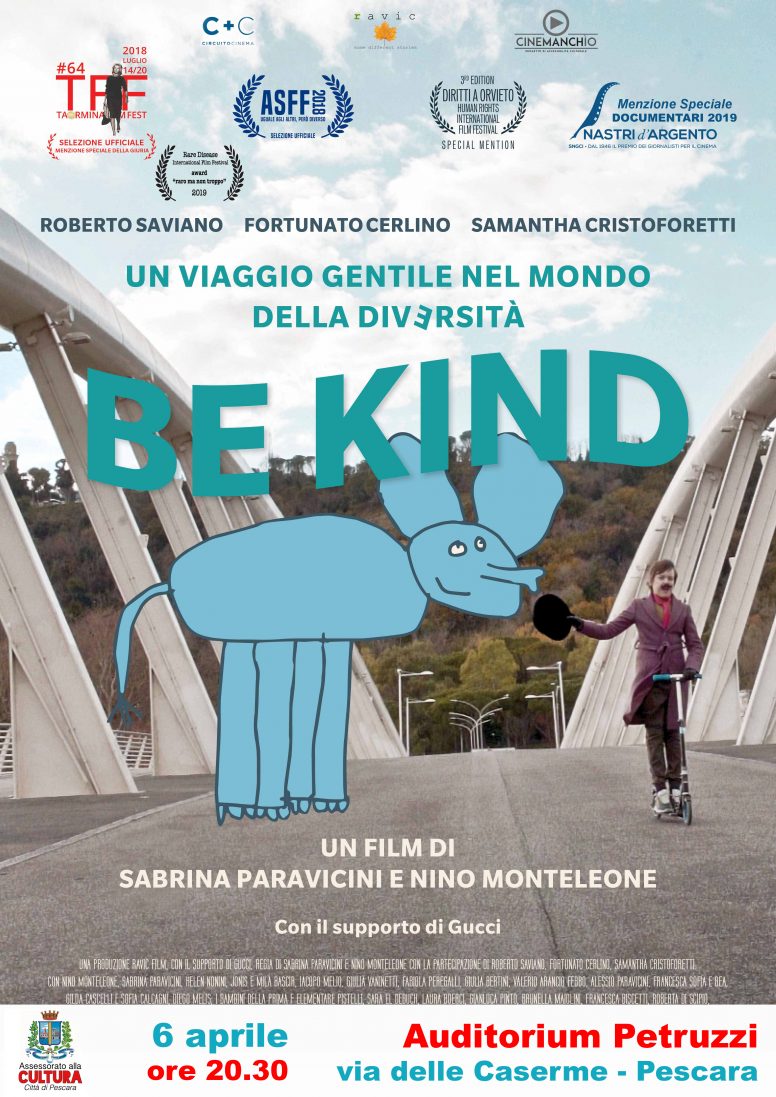 Gli organizzatori spiegano che “Be Kind (sii gentile) è un film che racconta le diversità, non solo quelle dovute alla disabilità, ma anche le diversità religiose, sociali, sessuali. Il documentario racconta la diversità come valore aggiunto e lo fa attraverso gli occhi di un bambino, con delicatezza e innocenza e, appunto, gentilezza.