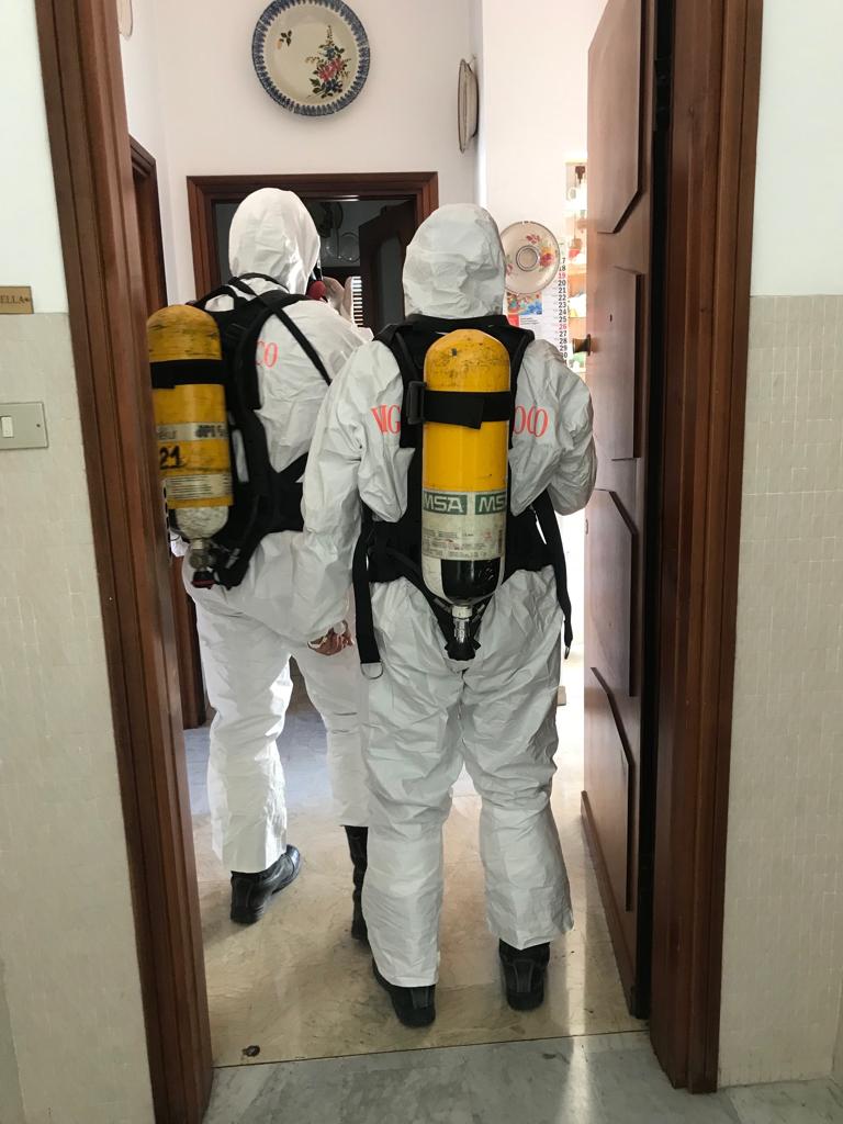 Quando sono entrati i vigili de fuoco (che vediamo nella foto) hanno trovato Marcello Marcella, 82 anni compiuti lo scorso 10 agosto, riverso sul bordo del letto in posizione supina.
