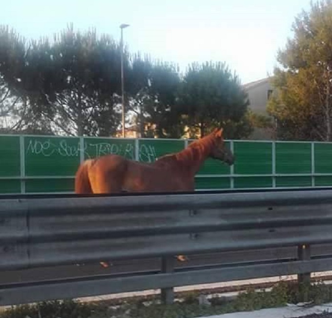 Pescara: cavallo a passeggio sull’asse attrezzato questa mattina intorno alle 6.30 all’altezza dell’uscita di Via Aterno in direzione est.