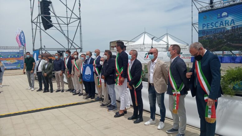 – per la provincia di Teramo, Pineto (presente il sindaco Robert Verrocchio), Roseto degli Abruzzi (vessillo ritirato dal sindaco Sabatino Di Girolamo), Silvi (amministrazione rappresentata dal primo cittadino Andrea Scordella), Giulianova (rappresentata dal consigliere comunale Andrea Cicchiné), Tortoreto (è intervenuto l’assessore al Turismo Giorgio Ripani) e Martinsicuro (con il sindaco Massimo Vagnoni;
