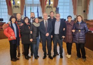 Il candidato sindaco del campo largo Carlo Costantini si presenta ufficialmente in Comune a Pescara con la coalizione dopo l’accordo tra Pd, M5S, Azione, Verdi e Sinistra Italiana e comitati