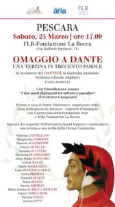La terza edizione del Dantedì, con il titolo “Omaggio a Dante. Una terzina in trecento parole” è organizzata da La casa della poesia in Abruzzo – Gabriele d’Annunzio e quest’anno gode del patrocinio della Fondazione Aria e della Fondazione La Rocca.