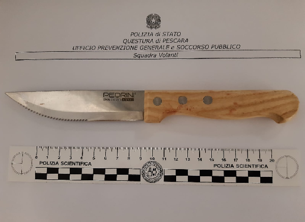 L’uomo è stato anche denunciato in stato di libertà per porto di oggetti atti ad offendere, essendo stato trovato in possesso di altri coltelli, e per inottemperanza al divieto di ritorno nel comune di Pescara e inottemperanza all’ordine del Questore di lasciare il territorio Nazionale.