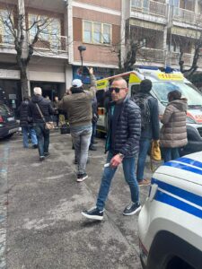 L’uomo è stato subito affidato alle cure del 118; non è chiaro al momento se la polizia di stato abbia fatto irruzione nell’appartamento o se il giovane si sia consegnato spontaneamente, ma, si apprende, prima di essere prelevato era sceso dal balcone ed era entrato in casa. Accompagnato da numerosi agenti di polizia il giovane è stato fatto uscire dal condominio completamente avvolto da una coperta azzurra. Il personale del 118 gli sta prestando le prime cure sul posto in ambulanza per il successivo trasferimento in ospedale.