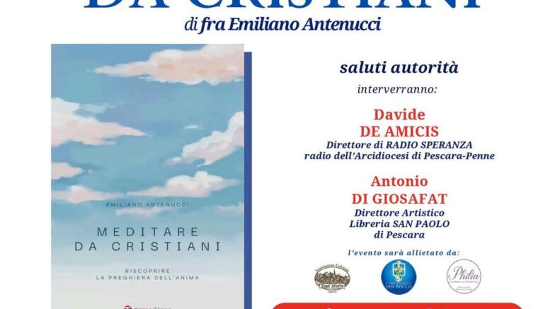 Domani, nell’aula magna del Liceo Classico “Gabriele D’Annunzio”, di Pescara Fra Emiliano Antenucci presenta il suo ultimo libro “Meditare da Cristiani”