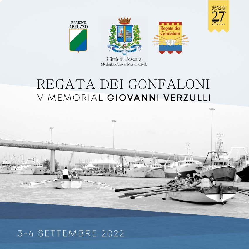 Nelle acque del porto canale saranno 21 le imbarcazioni delle marinerie dell’Adriatico che a Pescara, domenica 4 settembre, si sfideranno a colpi di remi in occasione della 27esima “Regata dei gonfaloni”. In gara ci saranno 12 squadre maschili e nove femminili e ogni equipaggio sarà composto da dieci vogatori, oltre a un timoniere. Una manifestazione che ha il sapore della competizione ma anche del sano campanilismo e che rappresenta la celebrazione delle tradizioni legate al mare. Oltre alla gara di domenica che sarà seguita in diretta da Rete8, da sabato 3 settembre la manifestazione aprirà i battenti con gli stand gastronomici della sagra del pesce. Seguiranno lo spettacolo di teatro dialettale ” I racconti della vecchia Pescara”e la Pizzica salentina con i Ripatemare. Il 4 ,dopo le premiazioni dei vincitori, a concludere la manifestazione sarà il concerto degli Outlet Band revival ’70 ’80 ’90.