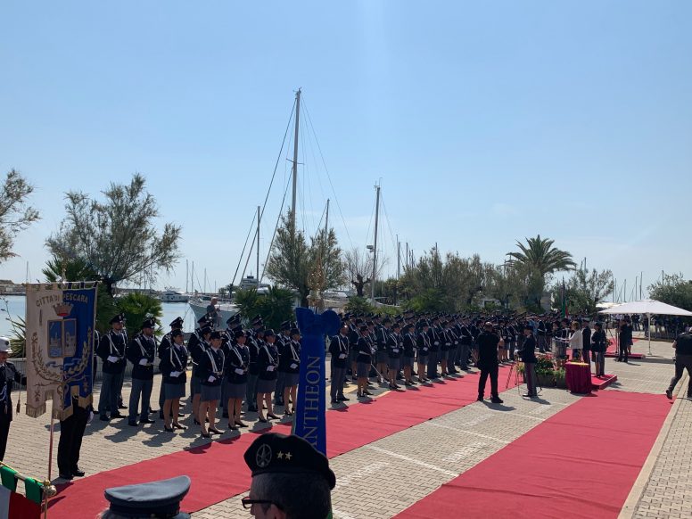 Nonostante il gran caldo massiccia la partecipazione alla cerimonia di giuramento per gli 87 agenti in prova che hanno brillantemente superato il 204° corso della scuola di Polizia a Pescara. Momenti di grande emozione al Marina di Pescara, scenario se vogliamo inconsueto ma ricco di suggestione, scelto appositamente per l’occasione dal direttore della scuola per il controllo del territorio di Pescara, il primo dirigente Francesco Zerilli. Sono oltre 400 i nuovi agenti usciti dalle varie scuole sparse sul territorio nazionale ed andranno a rinforzare diverse questure con 4 mesi di prova a partire dai primi di luglio, prima di affrontare un periodo di residenzialità di 8 mesi. A salutare i nuovi poliziotti, con una media d’età di 25 anni e quasi tutti laureati, oltre ai tanti parenti, anche le massime autorità, tra queste il Prefetto Alessandra Guidi vice capo della Polizia: