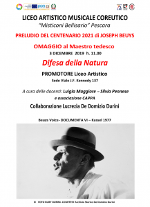 Il liceo “Misticoni Bellisario” di Pescara, guidato dalla dirigente Raffaella Cocco, rende omaggio all’artista tedesco Joseph Beuys in vista del del centenario della nascita che sarà celebrato nel 2021.