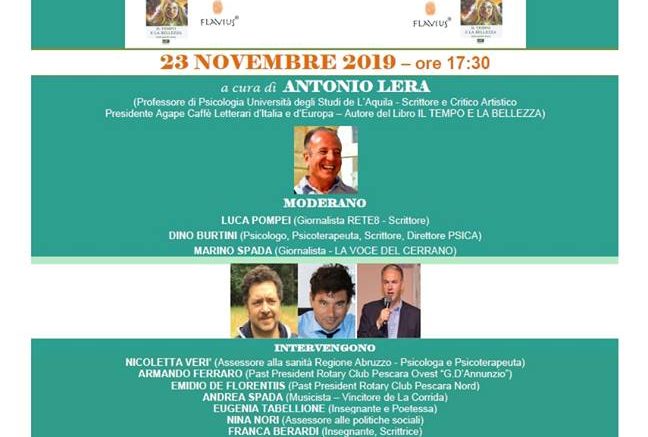 Il poeta e presidente Agape Caffè Letterari d’Italia e d’Europa Antonio Lera presenta domani il suo ultimo libro “Il Tempo e la Bellezza” al “Mente & Natura” di Pescara.