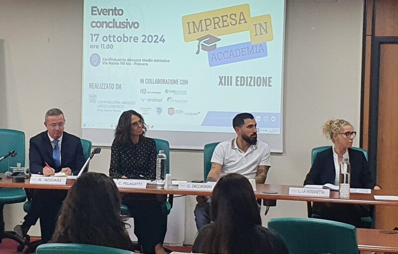 “Impresa IN Accademia” è un percorso formativo realizzato dal Gruppo Giovani Imprenditori e dal Comitato Piccola Industria di Confindustria Abruzzo Medio Adriatico, che da tredici anni fornisce agli studenti universitari gli strumenti utili nella conoscenza delle proprie potenzialità e competenze, per le definizione del proprio percorso di crescita e per la realizzazione professionale e personale.