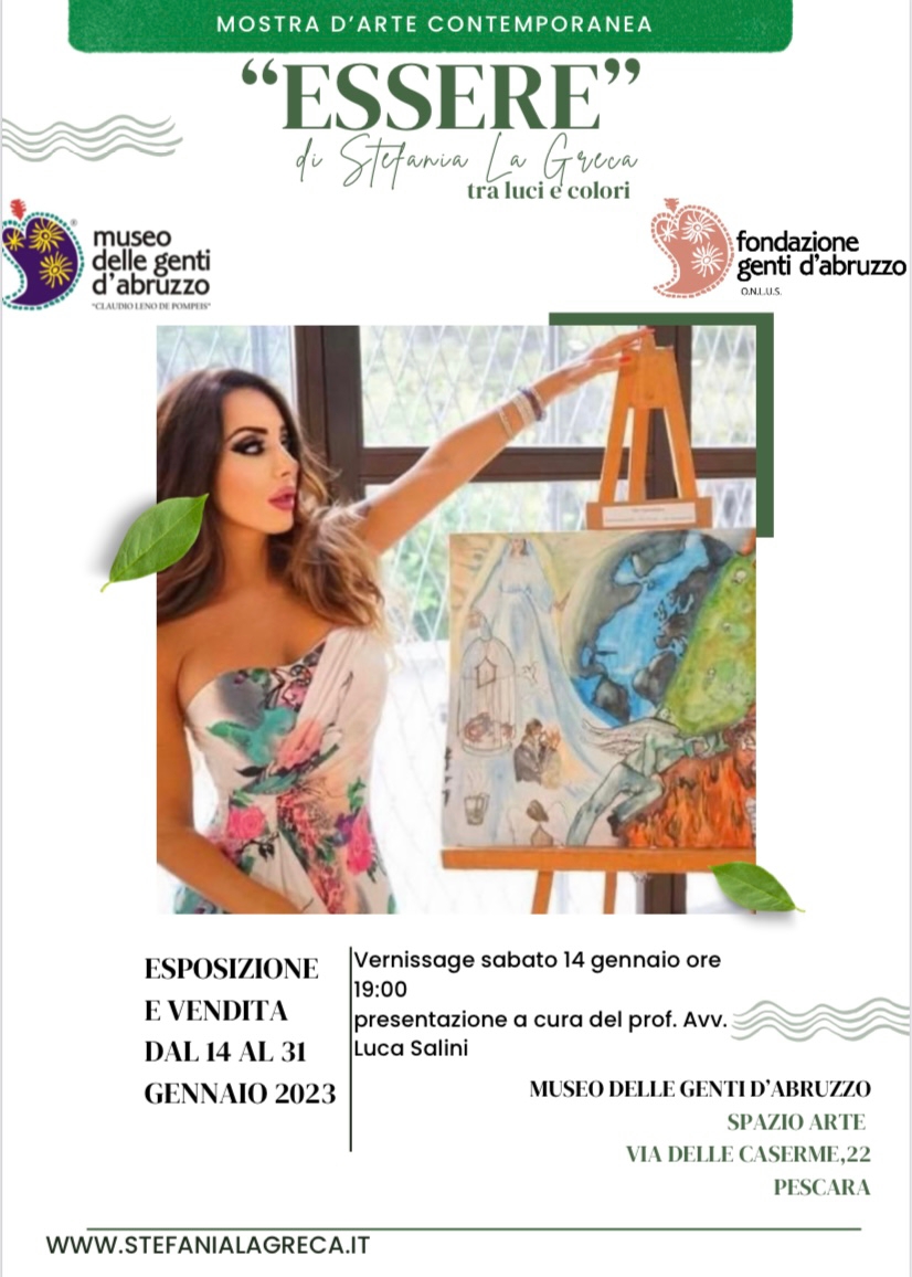 La poliedrica e celeberrima artista di origina partenopea ma pescarese di adozione Stefania La Greca (nella foto in basso insieme al sindaco di Pescara Carlo Masci) presenta la nuova mostra di pittura dal titolo “Essere”.