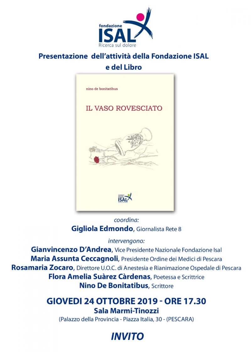 Giovedì 24 ottobre a Pescara si terrà un incontro promosso da Isal-Ricerca sul dolore nel corso del quale sarà presentato il libro “Il vaso rovesciato ” il cui ricavato sarà devoluto alla Fondazione.