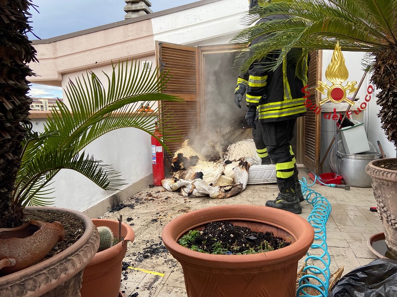 La squadra prontamente giunta sul posto con l’ausilio dell’autoscala entrava nell’appartamento invaso dal fumo constatando che non vi era nessuno all’interno e provvedeva a spegnere l’incendio. Sul posto è intervenuta anche una volante della Polizia di Stato. Si indaga sull’origine delle fiamme.