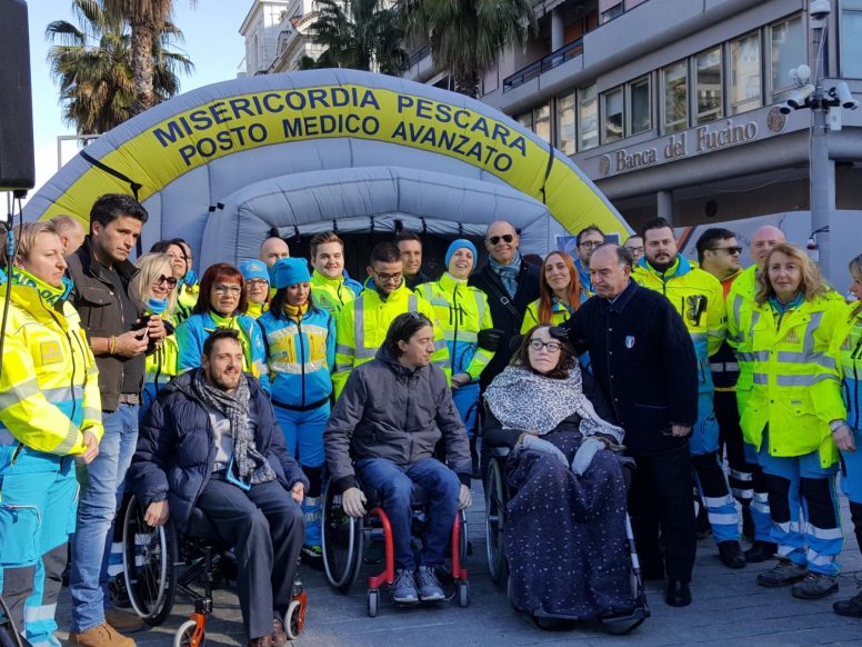 “Oggi la nostra amica Paola consegna il pulmino alla Misericordia, la Misericordia consegna questo pulmino alla città. Dopo 30 anni di onorato servizio sul territorio, la Misericordia di Pescara torna tra la gente e con la gente. Questo sarà un pulmino che svolgerà un servizio atto a ridare la libertà a tutti coloro che con disabilità varie combattono i problemi quotidiani. Oggi ha vinto il singolo aiuto di ognuno che ha realizzato un grande progetto di solidarietà.”