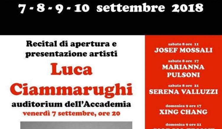 Il Pescara Piano Festival 2018, manifestazione con la quale l’Accademia Musicale Pescarese vuole salutare i 40 anni dalla fondazione, celebra il pianoforte con una kermesse che intende presentare al pubblico appassionato e competente dell’Accademia, i migliori talenti oggi presenti nel panorama concertistico italiano, già premiati in concorsi nazionali e internazionali. A tenerli per mano un raffinato pianista, musicologo, conduttore radiofonico e scrittore come Luca Ciammarughi che inaugurerà con un recital il 7 settembre alle ore 20 il Pescara Piano Festival e che presenterà tutti i giovani protagonisti della rassegna. Dal giorno successivo si alterneranno sul palco dell’Accademia Josef Mossali, Marianna Pulsoni, Serena Valuzzi, Xing Chang, Giorgio Trione Bartoli, Laura Licinio, William Greco, Kiana Reid.