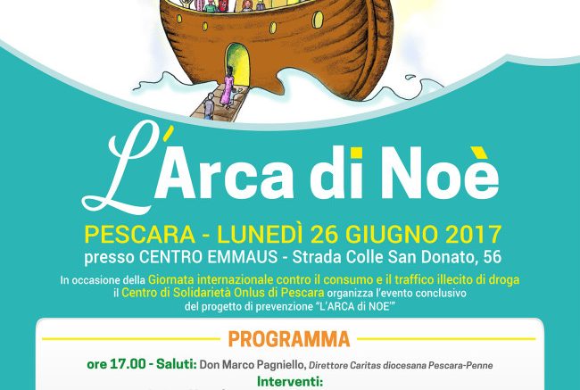 Pescara: l’Arca di Noè del Ceis al centro Emmaus lunedì prossimo in occasione della Giornata Mondiale contro il traffico e l’abuso di droghe.