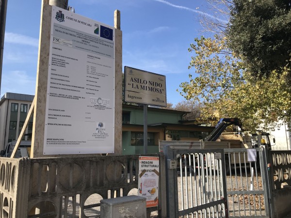 Da alcuni giorni negli asili nido comunali “La Mimosa” e “La Conchiglia” di Pescara sono iniziati i lavori per l’adeguamento sismico. Questa mattina il sindaco Marco Alessandrini e l’assessore alla Pubblica Istruzione ed Edilizia Scolastica Giacomo Cuzzi hanno effettuato un sopralluogo per verificare lo stato di avviamento del cantiere nei nidi che si trovano rispettivamente in via Benedetto Croce e via Vespucci.