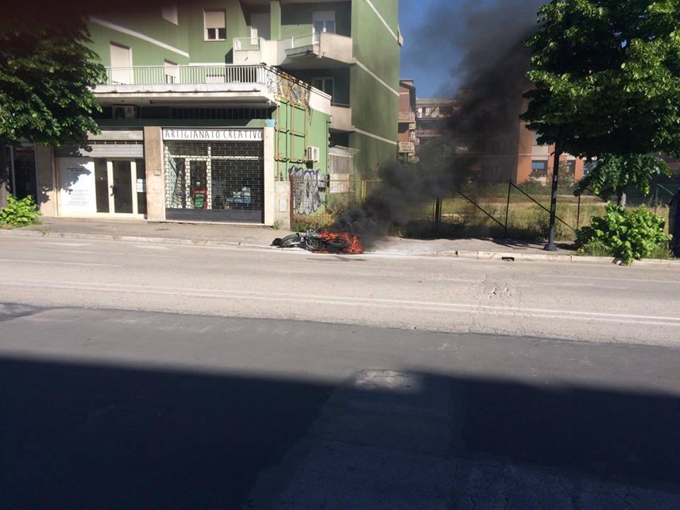 Pescara: Moto in fiamme vicino alla Stazione questa mattina, paura in pieno centro in un’ora abbastanza trafficata per apertura degli uffici e delle scuole.
