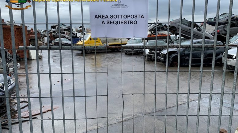 I militari della Reparto Operativo Aeronavale della Guardia di Finanza, a seguito di recenti missioni di volo riconducibili a finalità istituzionali di controllo del territorio ed a tutela de patrimonio ambientale, hanno posto sotto sequestro un’azienda dedita al recupero e preparazione per il riciclaggio di rottami ferrosi nonché di demolizioni di autoveicoli fuori uso. L’intervento ha consentito di accertare/rinvenire, all’interno della vasta area del sito in questione, rifiuti di matrice ferrosa e non, costituiti principalmente da veicoli e ciclomotori fuori uso non sottoposti alle operazioni di bonifica dei componenti pericolosi, accumulatori al piombo esausti, rifiuti costituiti da motori elettrici (R.A.E.E.), elettrodomestici fuori uso, rottami di ferro, plastica, rame, cavi elettrici triturati e non, barattoli di vernice contenenti residui pericolosi, serbatoi e bombole contenenti gas G.p.l. non opportunamente bonificate, etc.. Al termine del controllo veniva posta la misura cautelare del sequestro preventivo dell’intero sito aziendale di circa 8.400 mq. nonché di tutti i rifiuti principalmente a matrice ferrosa e non, illecitamente stoccati. Analoga misura cautelare è stata applicata a due automezzi illecitamente utilizzati per il trasporto e conferimento di rifiuti, a matrice ferrosa e non, privi di qualsiasi autorizzazione necessaria a tale attività.