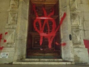 Imbrattati, nella notte, con vernice rossa, i muri esterni, il portone e l’ingresso del Palazzo del Governo a Pescara. Tra le scritte il simbolo No Vax. Nel novembre scorso il precedente alla sede della Cgil. Le scritte sono state rimosse da personale di Ambiente SpA