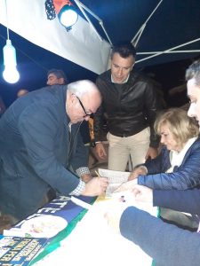Oggi in piazza a Pescara per firmare è arrivato anche Francesco Storace, ex ministro, già presidente della Regione Lazio, come si vede nelle foto pubblicate sul suo profilo Facebook dal capogruppo di Fratelli d’Italia in consiglio regionale Guerino Testa il quale ha ringraziato tutte le persone che hanno apposto le loro firme.