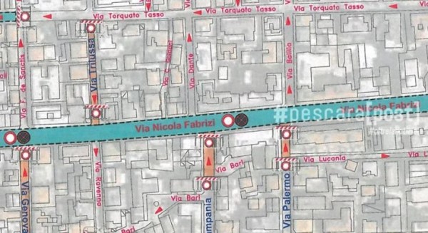 via Campania, nel tratto compreso tra via Bari e via “Nicola Fabrizi”