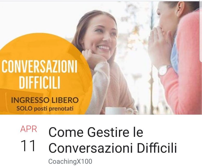Nuovo appuntamento formativo per la CoachingX100 School di Pescara. Giovedì prossimo in programma una masterclass sul tema “Come gestire una Conversazione Difficile”. La partecipazione è gratuita.