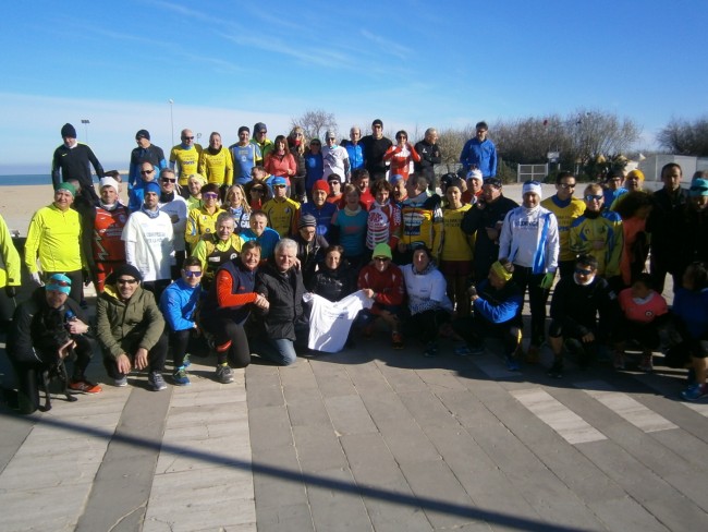Nel primo giorno del nuovo anno erano in centinaia provenienti da tutta la Regione al ritrovo della Madonnina per partecipare alla gara podistica non competitiva di 10 chilometri, dedicata a Piero De Flaviis, runner pescarese prematuramente scomparso all’età di 45 anni, Renato D’Amario, uno dei fondatori del Podismo abruzzese, talent scout, scomparso all’età di 66 anni e Roberto Straccia, il giovane universitario marchigiano misteriosamente scomparso all’età di 24 anni nel dicembre del 2011 mentre faceva jogging sul lungomare di Pescara e trovato cadavere a Bari il 7 gennaio del 2012. Come tradizione presenti anche i genitori di Roberto. Alla fine un coraggioso tuffo in mare per tutti. L’iniziativa, organizzata a più mani dall’associazione sportiva Manoppello Sogeda; l’associazione “In cammino con Roberto Straccia”; la Uisp e l’Acli, quest’anno ha voluto riservare l’incasso della quota di partecipazione di 2 euro all’associazione per malati di Sla.
