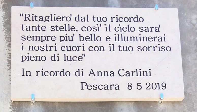 Una cerimonia breve ma intensa, stamane in Via Ferrari a Pescara, in corrispondenza con l’ingresso della terza galleria della stazione, dove è stata scoperta una targa in memoria di Anna Carlini.