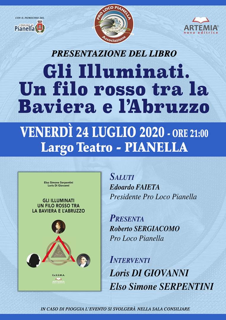 Stasera alle ore 21.00 a Pianella nella splendida cornice di Largo Teatro verrá presentato il libro “Gli Illuminati. Un filo rosso tra la Baviera e l’Abruzzo” di Elso Simone Serpentini e Loris Di Giovanni, edito da Artemia Nova Editrice.