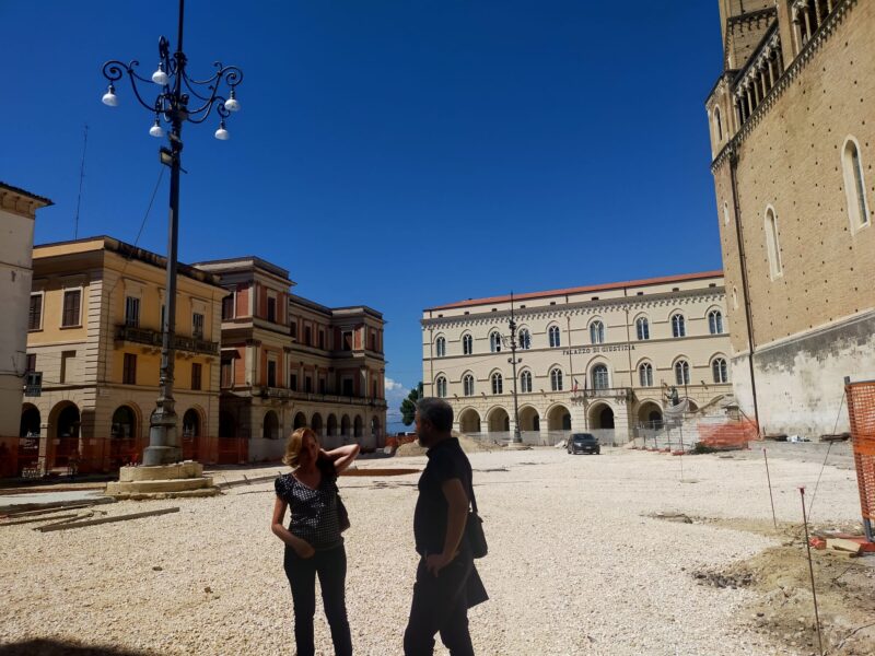 Gran parte della pavimentazione di piazza San Giustino a Chieti sarà realizzata con pietre bianche di Apricena, sinonimo di qualità, eleganza e “made in Italy”, mentre per l’illuminazione si punterà su luci a led e a risparmio energetico. Il sindaco Diego Ferrara, l’assessore ai lavori pubblici Stefano Rispoli e gli esperti della Soprintendenza e gli architetti che hanno elaborato il progetto di riqualificazione Gianfranco Scatigna e Maria Cicchitti (nella foto) hanno scelto tra tre diversi tipi di pietra calcarea estratta in Puglia alle pendici del Gargano, nel territorio compreso tra Apricena, Lesina e Poggio Imperiale.