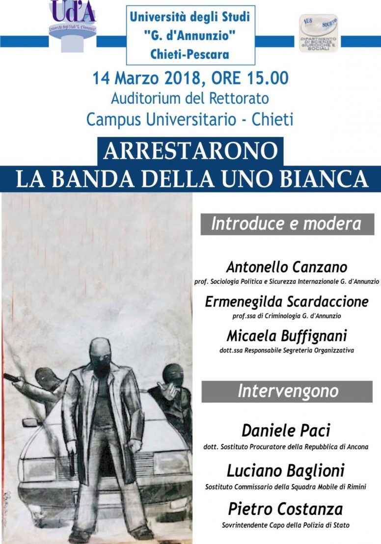 Una delle vicende di cronaca nera più inquietanti nella storia d’Italia, accaduta a cavallo tra gli anni ’80 e gli anni ’90, che vide operare in un raggio d’azione tra Bologna e Pesaro, una banda senza scrupoli autrice di oltre cento azioni criminali tra l’87 ed il ’94, lasciando dietro di se una lunga scia di sangue con 24 vittime e 102 feriti, tra questi anche diversi esponenti delle forse dell’ordine tra poliziotti e carabinieri. A sgominare quella banda dopo 7 anni di terrore tra Emilia Romagna e Marche, un pool formato da due tenaci poliziotti Luciano Baglioni e Pietro Costanza ed un magistrato che nel 1993 non ebbe paura di ereditare un fascicolo che i suoi colleghi tenevano a debita distanza, il sostituto procuratore oggi ad Ancona, Daniele Paci. Per loro fu ancora più doloroso e sconvolgente scoprire che la gran parte dei componenti di quella banda erano poliziotti, in particolare i fratelli Roberto ed Alberto Savi. A distanza di 24 anni poche uscite pubbliche in giro per l’Italia, un libro che ha ispirato anche una fiction su Mediaset qualche anno fa, ma nulla più. Ieri Paci, Baglioni e Costanza hanno, però, voluto essere presenti ad un interessante incontro organizzato dalla sociologa Micaela Buffignani, in collaborazione con l’Università “d’Annunzio” ed i docenti di sociologia politica e sicurezza internazionale Antonello Canzano e la docente di criminologia Ermenegilda Scardaccione , per raccontare la loro storia a centinaia di studenti del corso di criminologia.