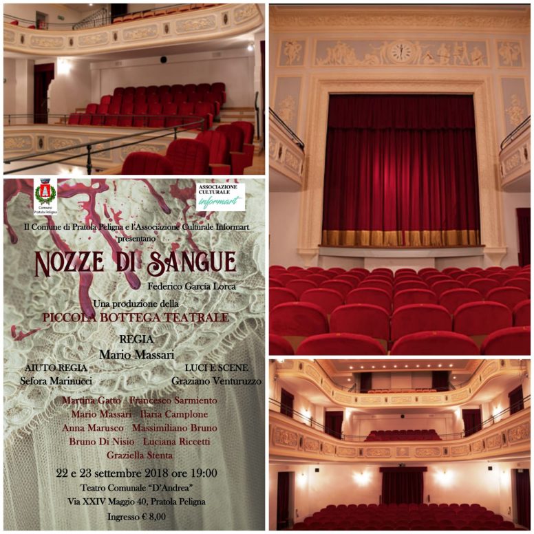 Sabato e domenica prossimi la Piccola Bottega Teatrale di Pescara porterà in scena “Nozze di sangue” di Federico Garcia Lorca al Teatro comunale D’Andrea di Pratola Peligna. La regia è di Mario Massari.