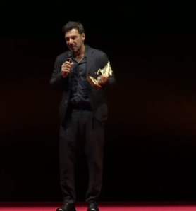 Premio per la migliore regia cinematografica a Gabriele Mainetti per il film “La città proibita”. E sempre per il cinema ha mandato un video da Amsterdam il regista e premio Oscar Edward Berger (nella foto in basso), vincitore del premio internazionale per il film “Conclave”.