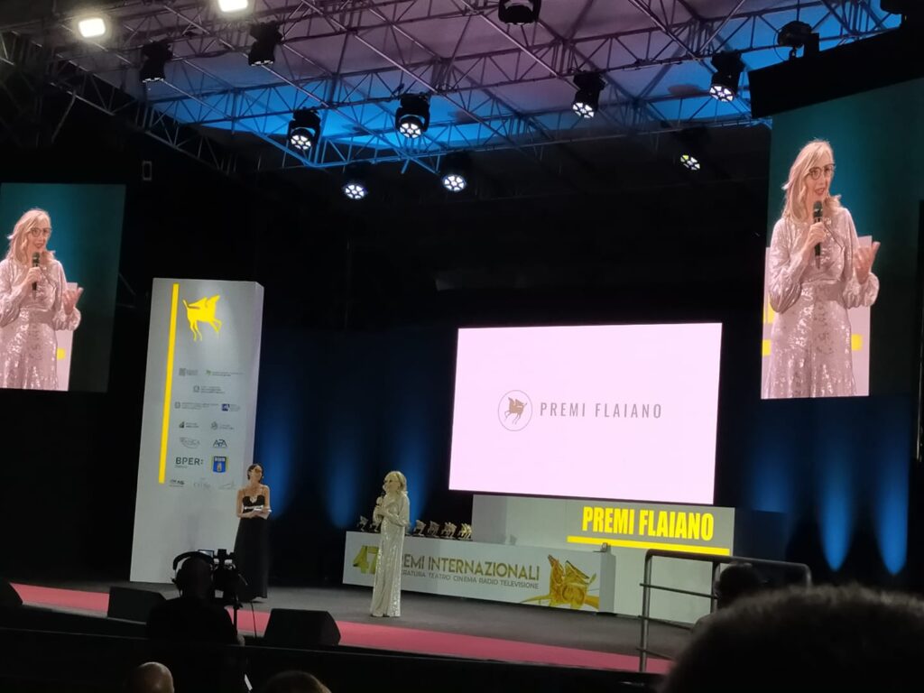 I riflettori si sono spenti ma la presidente Carla Tiboni (nella foto insieme alla conduttrice Martina Riva) pensa già alla prossima edizione ed è riuscita, anche nell’anno della pandemia, grazie al lavoro dei suoi collaboratori, a creare un evento di successo, in linea con quanto avviato nel 1973 da suo padre Edoardo Tiboni, il fondatore dei Premi Flaiano, scomparso nel 2017.