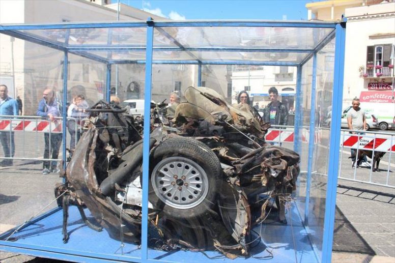 Per la prima volta in Abruzzo la teca con i resti della “Quarto Savona 15”, la Croma della scorta del giudice Falcone saltata in aria a Capaci.