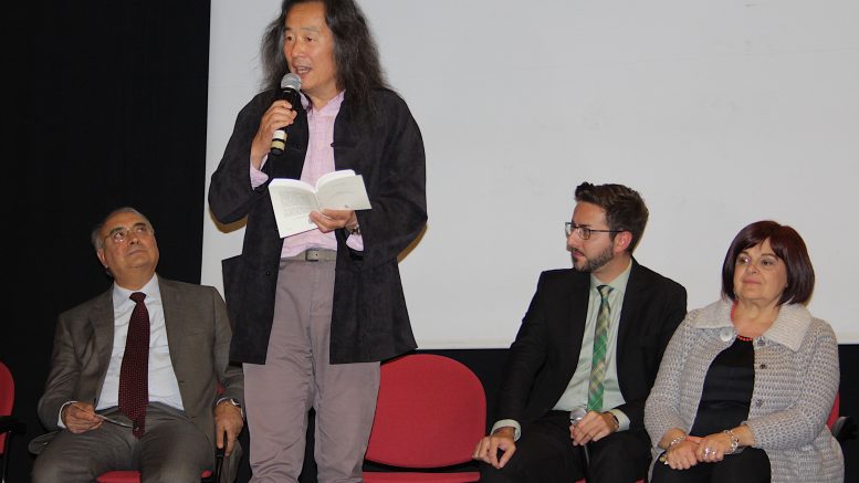 Yang Lian ha declamato alcune sue poesie in cinese, emozionando la sala per l’aderenza dei suoi scritti alla sofferenza e rinascita di un luogo come un penitenziario, ma anche di una città come L’Aquila dopo il terremoto.