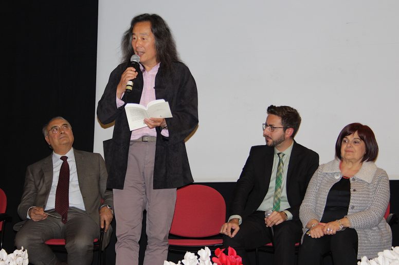 Yang Lian ha declamato alcune sue poesie in cinese, emozionando la sala per l’aderenza dei suoi scritti alla sofferenza e rinascita di un luogo come un penitenziario, ma anche di una città come L’Aquila dopo il terremoto.