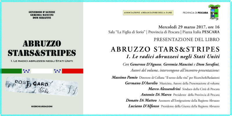 Presentato a Pescara il libro “Abruzzo Stars&Stripes – le radici abruzzesi negli Stati Uniti”, scritto da Generoso D’Agnese, Geremia Mancini e Dom Serafini.