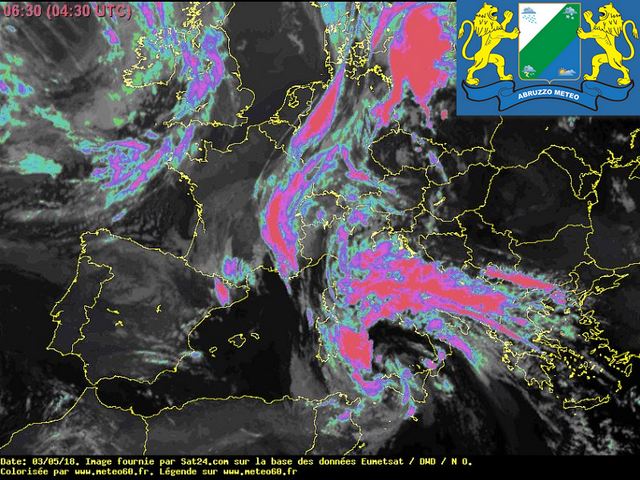 Previsioni meteo Abruzzo Giovedì 3 Maggio: cielo da nuvoloso a coperto con rovesci diffusi sull’aquilano, intensi sulle zone pedemontane e collinari del versante adriatico, a carattere temporalesco sull’Adriatico centrale e sulle aree costiere e sulle zone collinari vicine alla costa.