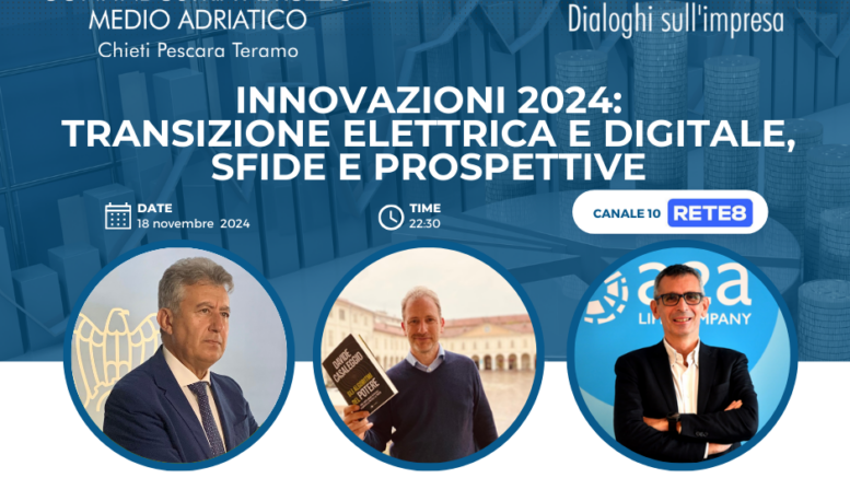 ‘InnovAzioni 2024: Transizione elettrica e digitale, sfide e prospettive. E’ il titolo della puntata di ‘EconoMIA, dialoghi sull’impresa’, format tv di Confindustria Abruzzo Medio Adriatico e Rete8 in onda, il 18 novembre, alle 22:30, sul canale 10 del digitale terrestre