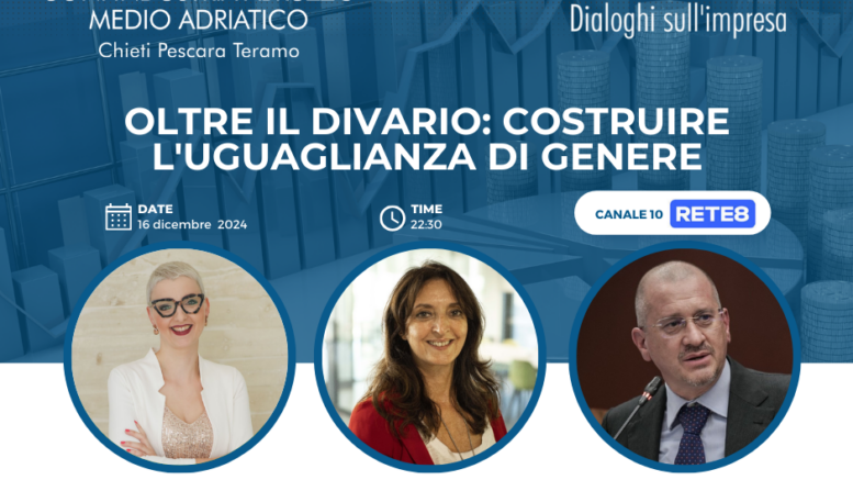 ‘Oltre il divario: costruire l’uguaglianza di genere’ è il titolo della prossima puntata di ‘EconoMIA, dialoghi sull’impresa’, format tv di Confindustria Abruzzo Medio Adriatico e Rete8 in onda lunedì 16 dicembre,alle ore 22:30, sul canale 10 del digitale terrestre