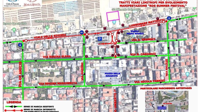 Lo Stadio del mare di Pescara, il 28 e 29 giugno, ospiterà una tappa dell’edizione 2024 di ‘RDS Summer Festival’. Scattano i divieti e le modifiche alla viabilità in città