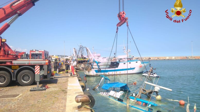 Si tratta del “William il Grande”, un peschereccio adibito a pescaturismo, che una volta ormeggiato sulla banchina, aveva imbarcato acqua per poi affondare piegandosi su un lato. Stamattina poco dopo le 10,00 una squadra di sommozzatori del distaccamento di Roseto degli Abruzzi, con l’ausilio di un autogrù inviata sul posto dal Comando di Teramo e la collaborazione di una squadra di vigili del fuoco del distaccamento di San Benedetto del Tronto, è intervenuta in porto per avviare le operazioni di recupero.
