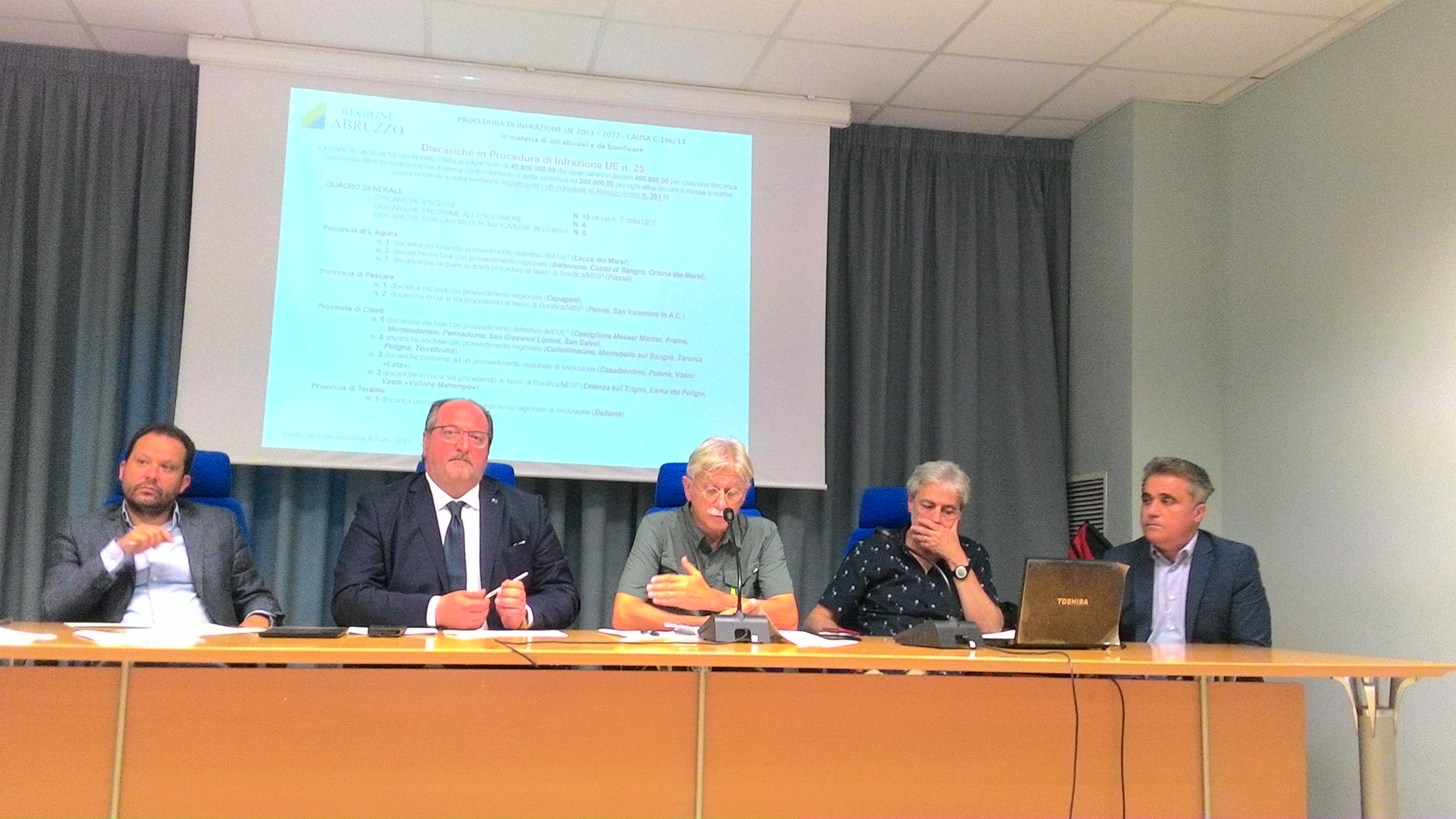 Questa mattina con i dirigenti del settore Ambiente Franco Gerardini e Emidio Primavera e il direttore generale dell’Arta Francesco Chiavaroli il sottosegretario Mazzocca ha spiegato che si va verso la soluzione delle criticità ambientali nel ciclo della gestione dei rifiuti. Ci sono a disposizione circa 43 milioni di euro. Per quanto concerne i siti abusivi da bonificare, per il mancato adeguamento alla direttiva del 1999 l’Abruzzo dovrà pagare 10 milioni di euro, ma solo per 6 delle 25 discariche abusive (che inizialmente erano 391) sono ancora in corso le operazioni di bonifica grazie al lavoro sinergico di Regione- Arta e Comuni.