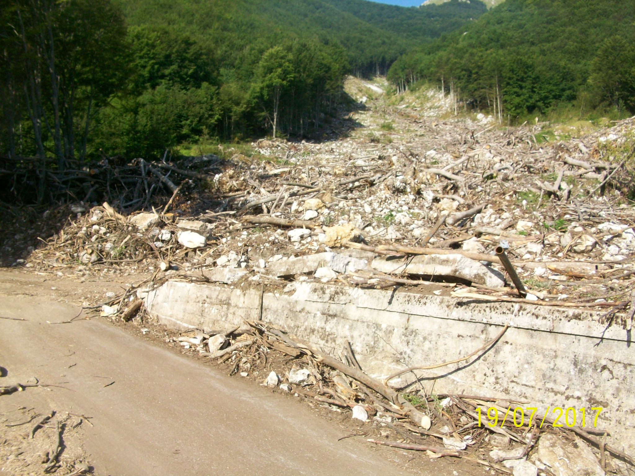 Rigopiano: strada ancora chiusa per i legnami che bisogna rimuovere prima di dare il via ai lavori di rimessa in funzione.