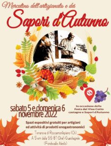 A Roccamontepiano la “Festa del vino cotto, castagne e sapori d’autunno”, dopo lo stop di due anni dovuto alla pandemia, sabato 5 e domenica 6 novembre, torna ad animare il borgo per ospitare i tanti visitatori che arriveranno nel paese della provincia di Chieti. Le tensostrutture in piazza, in contrada Terranova, garantiranno che la manifestazione possa svolgersi anche in caso di maltempo.