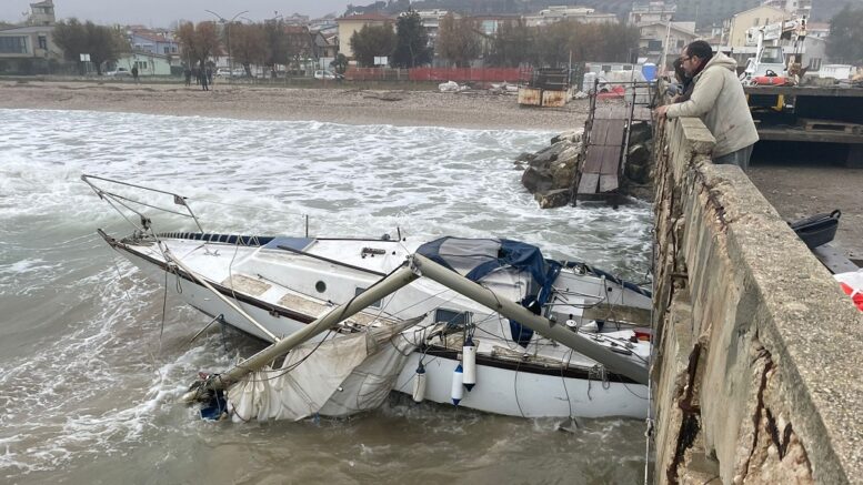 Il natante si è scontrato prima contro le scogliere frangiflutti rischiando di affondare e poi è finito sotto il pontile, di conseguenza l’albero è stato tranciato e l’imbarcazione è andata alla deriva arenandosi sulla spiaggia.