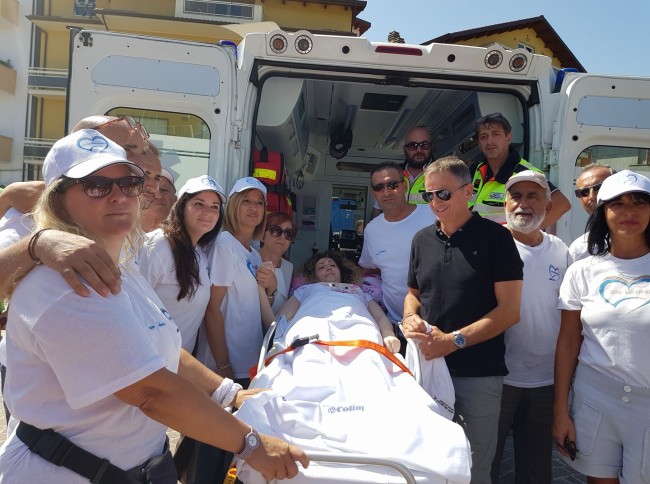 200 cicloamatori, domenica scorsa, hanno risposto all’appello dell’Associazione “Cuore Nazionale” Abruzzo, per dare vita ad una pedalata di solidarietà per Debora Brandimarte, la donna di 38 anni di Sambuceto affetta da anni da una grave patologia che le impedisce di alzarsi e camminare. Debora é stata riconosciuta invalida al 100%, ma non ha l’accompagnamento, ha bisogno di un nuovo ricovero in un centro di riabilitazione specializzato. Dopo un ricovero tre anni fa, un’apposita commissione medica di valutazione ha stabilito che per lei fosse sufficiente un’assistenza domiciliare e se desidera sottoporsi ad un nuovo programma di riabilitazione specialistica in un centro attrezzato, se lo dovrà pagare da sola. La Brandimarte si é già sottoposta ad una serie d’interventi alla schiena, ma senza benefici, così come attestano gli stessi riabilitatori domiciliare che la paziente paga di tasca sua, così come paga di tasca sua anche la cannabis per uso terapeutico e il servizio di ambulanza privata quando le occorre. Tuttavia le risorse non sono infinite, inoltre con lei vivono i suoi due genitori entrambi anziani che non possono garantirle la giusta assistenza h24. C’é qualcosa che andrebbe rivisto nella relazione della commissione medica di valutazione della Asl perché appare fin troppo evidente che Debora Brandimarte non può essere lasciata sola in questo modo. Lo hanno ribadito con forza, in occasione della pedalata di solidarietà, lo stesso sindaco di S.Giovanni Luciano Marinucci, il coordinatore regionale di “Cuore Nazionale” Francesco Longobardi e le responsabili territoriali dell’associazione Eliana Ferretti e Gabriella Crocetta.